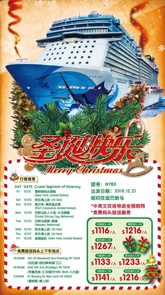Read More新的一年,为爱起航:纽约巴哈马10天9晚往返新年倒数团