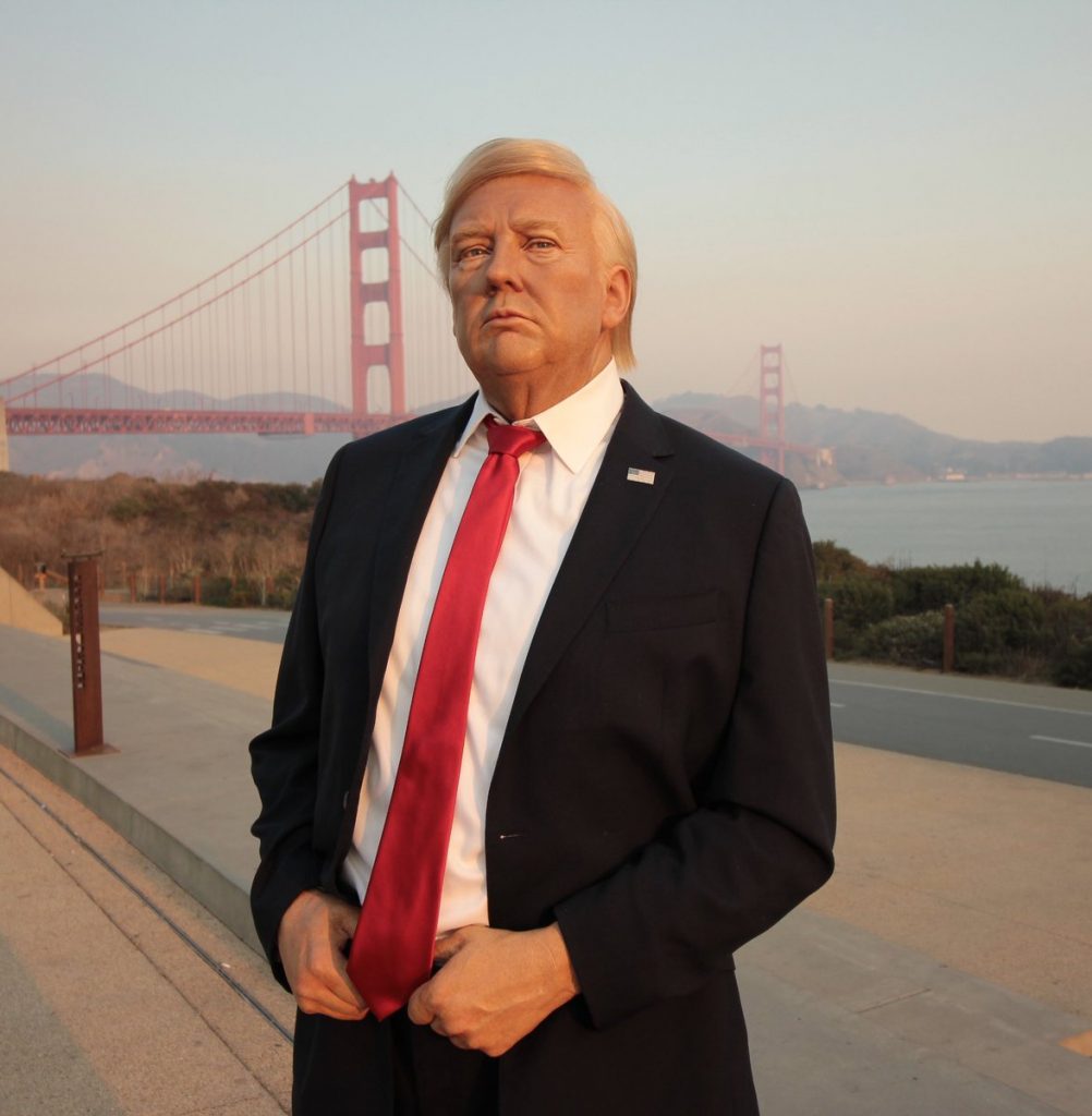 杜莎夫人蜡像馆制作的美国第45任总统川普蜡像应民众呼吁“到访”旧金山,并“参观”了这座城市的著名地标渔人码头、金门大桥及社交网络平台推特的总部。